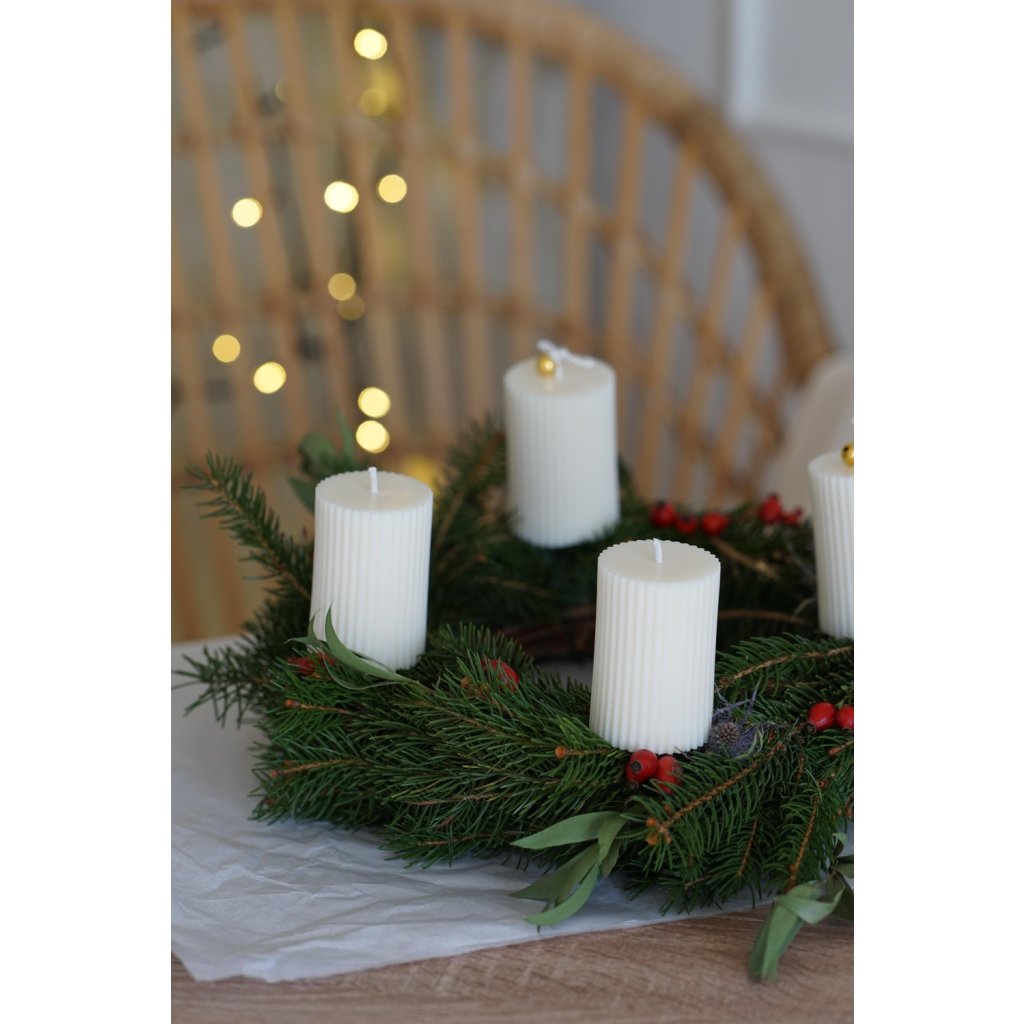 Užijte si kouzlo adventního času s ručně vyrobenými svíčkami z čistého sójového vosku. Svíčka Amari má kuželovitý tvar s jemnými proužky po celém obvodu. Sada obsahuje 4 kusy svíček ze sójového vosku do Vašich adventních věnců a svátečních aranžmá.
