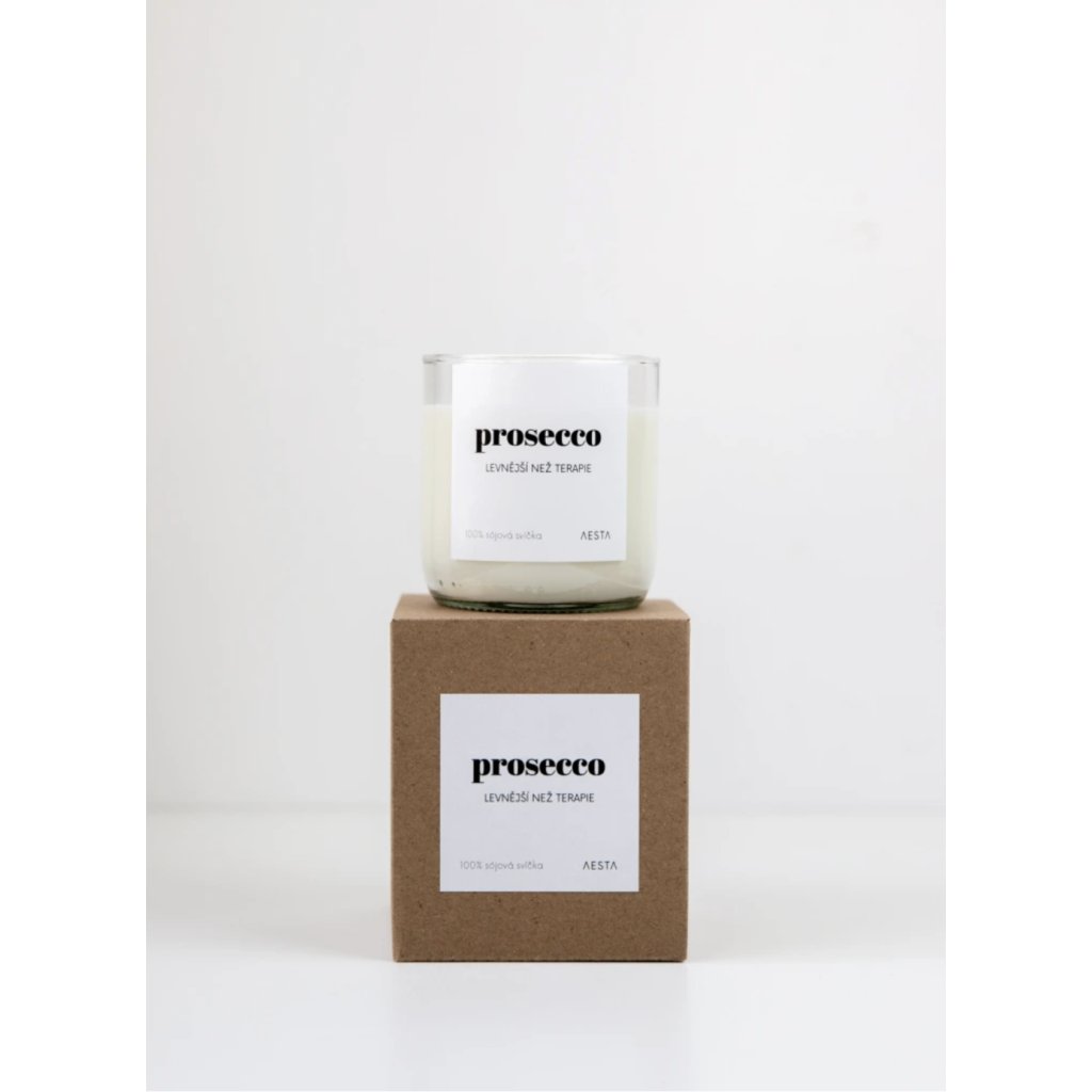 Svíčka s vůní Prosecco voní jako volný večer a právě otevřená láhev bublin.